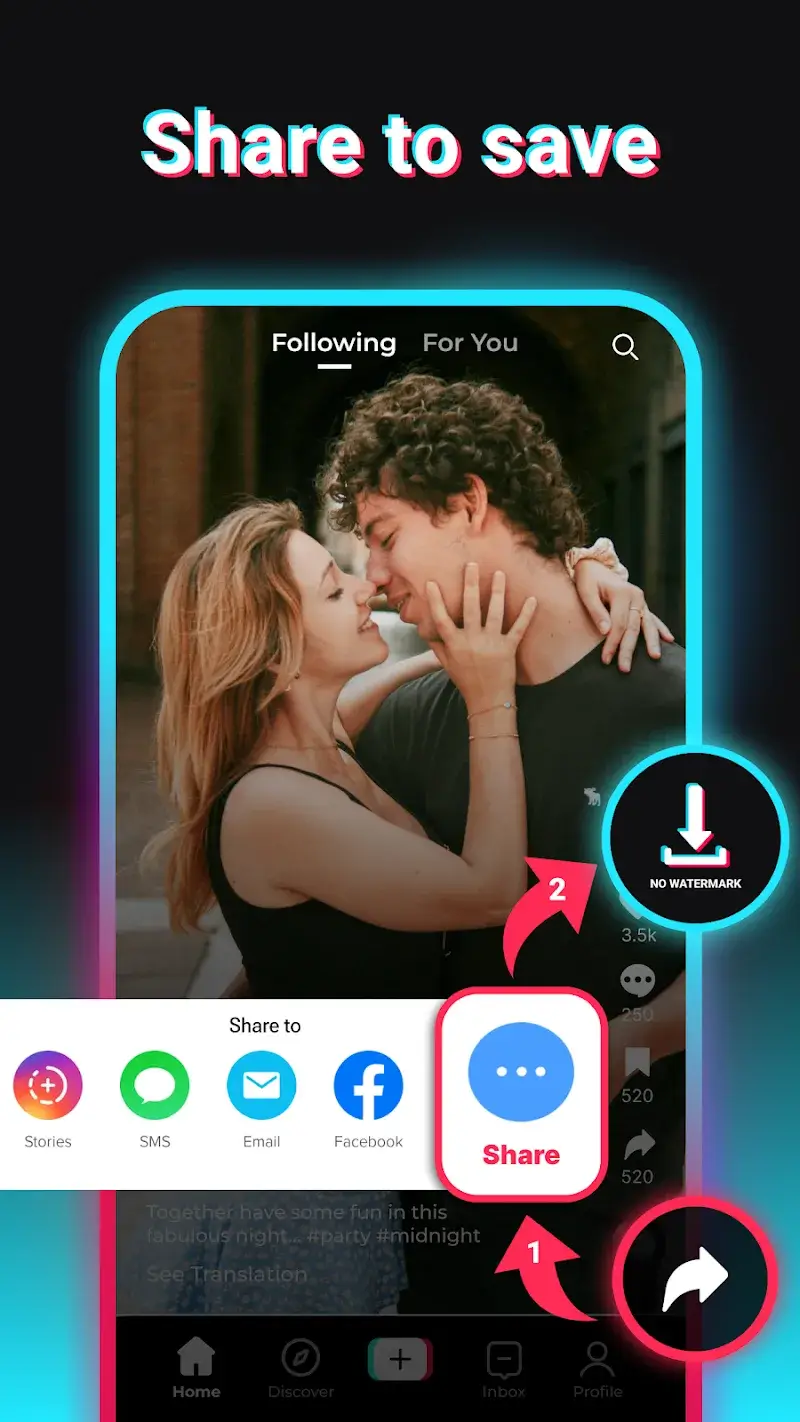 Enable seamless sharing: Users always care about and prioritize the seamlessness of applications. For applications with the main features of sharing and downloading, seamlessness and continuity are even more important. Users can share videos and download them seamlessly and in succession simply.