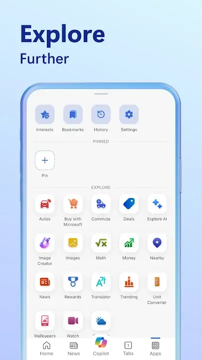 The application's browser, built on Bing's powerful search engine, lets users easily search the internet. Users may find relevant online articles and multimedia material quickly using straightforward search engines and personalized suggestions.