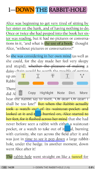 Moon+ Reader Pro - the most popular reader for Android. The program has many necessary functions, so you can increase the font size and type, the night mode for reading e-books, supports all possible formats, among them popular: TXT, EPUB, FB2, MOBI, PDF and many others.