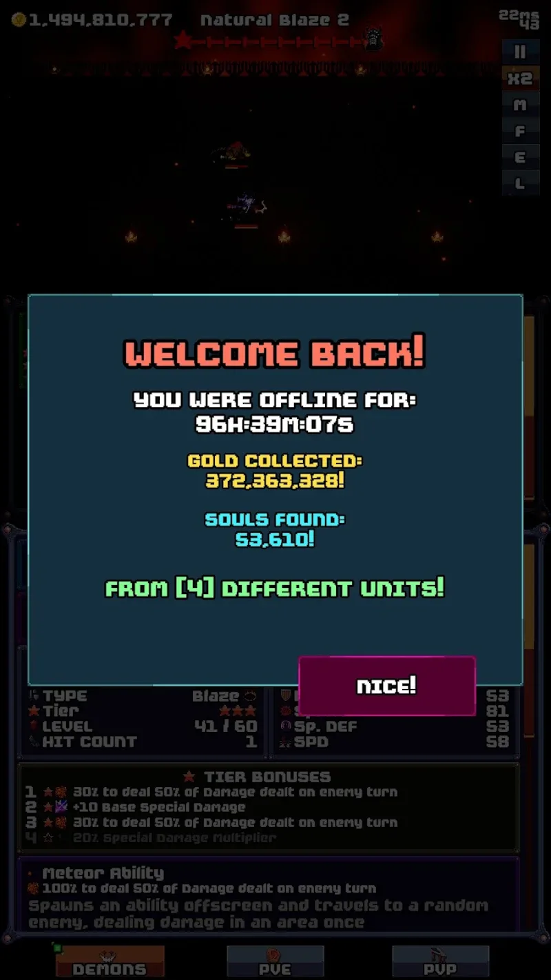 Progress While Away: Monsters will also fight to become stronger even when you are not in the game.
