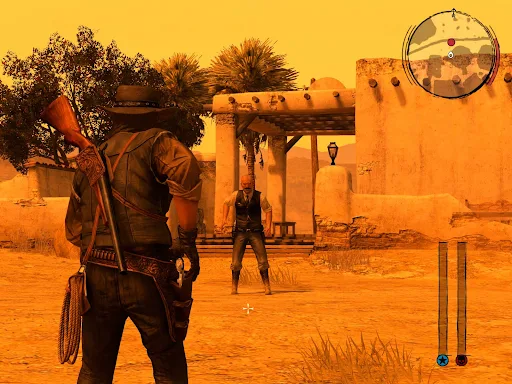 Red Dead Redemption has lifted the bar in terms of the Wild West aesthetic The graphics of the game, even in the original version, feature a sprawling landscape with detailed prairies, deserts and frontier towns. Although the game is a mobile adaptation of an old console version, it still carries the same tragic configuration and atmosphere.